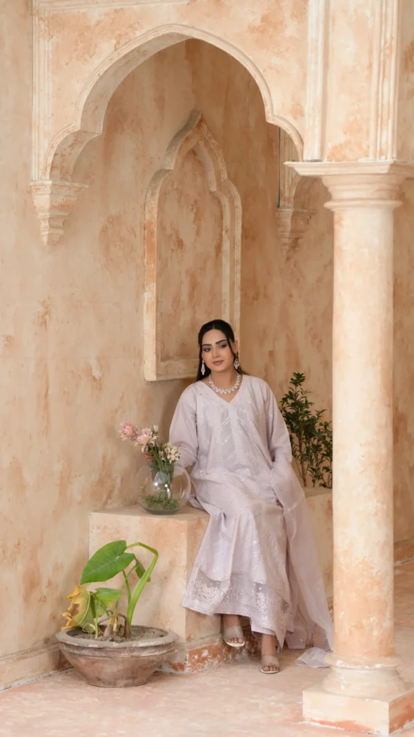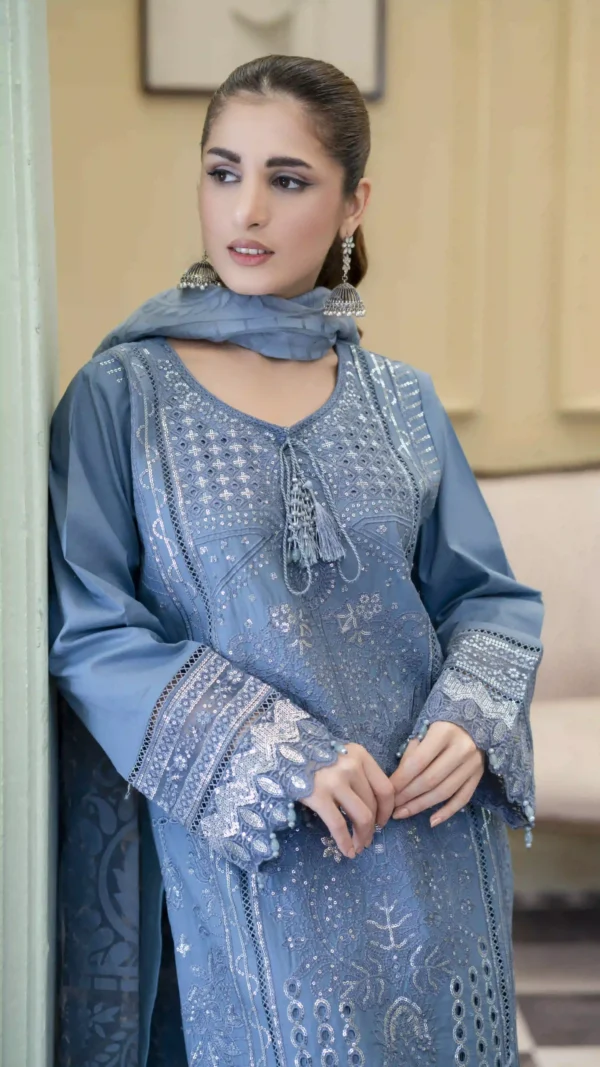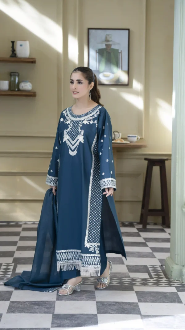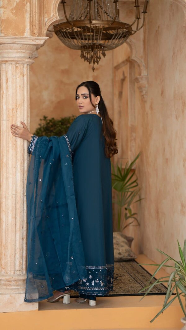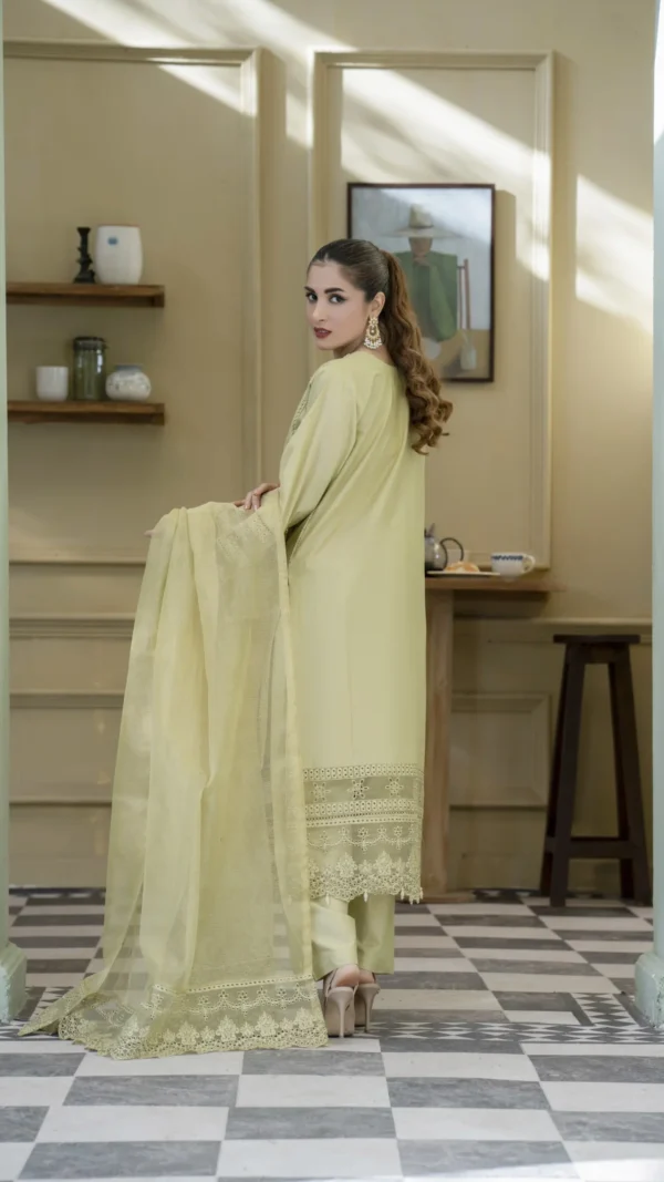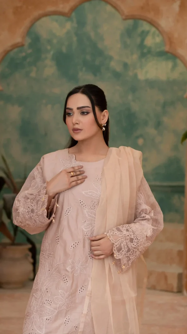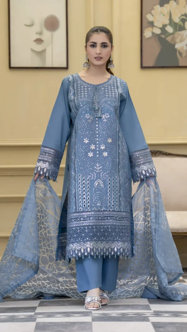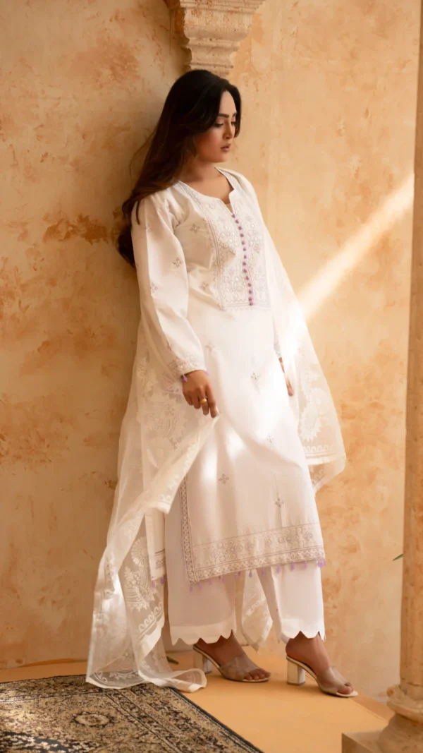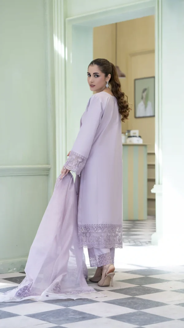 Elegant Black Embroidered Lawn Outfit with Floral Organza Dupatta