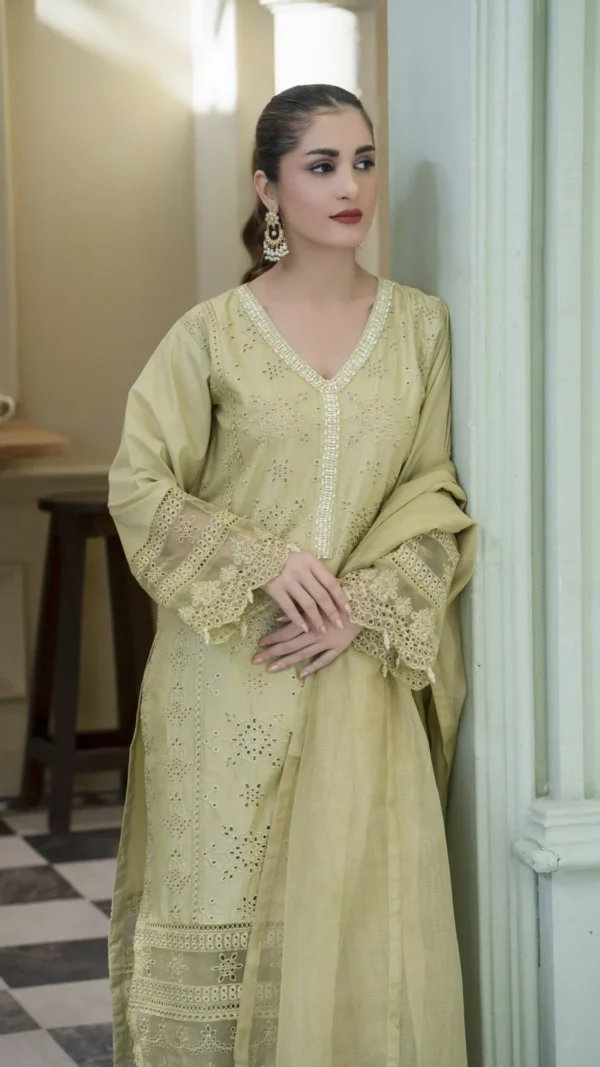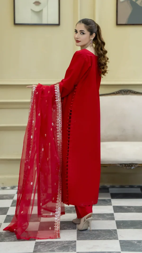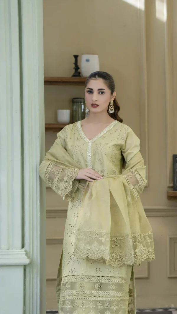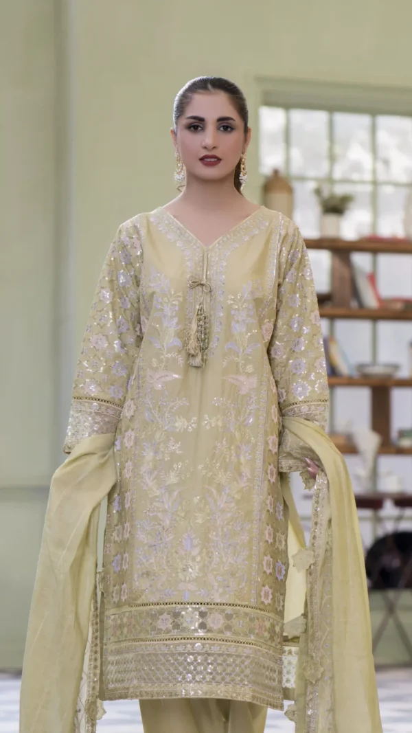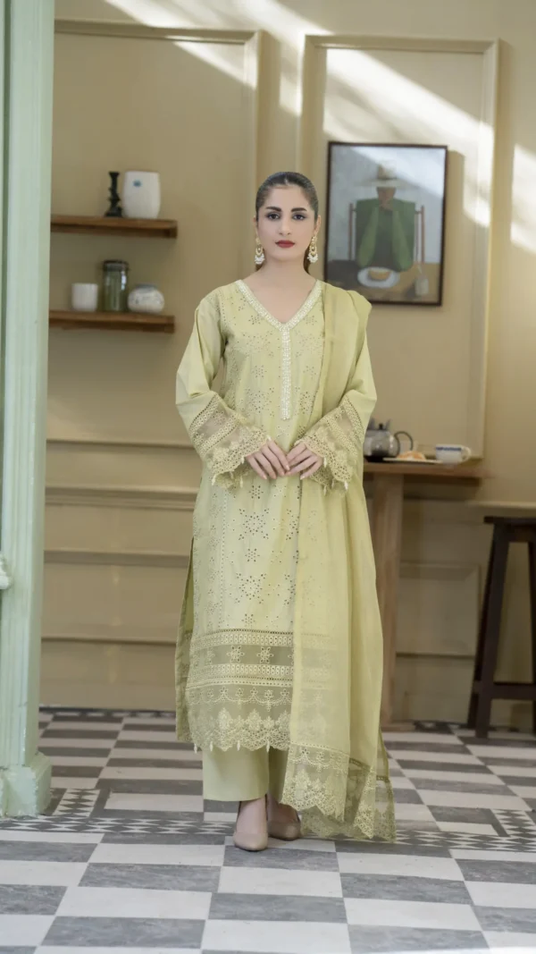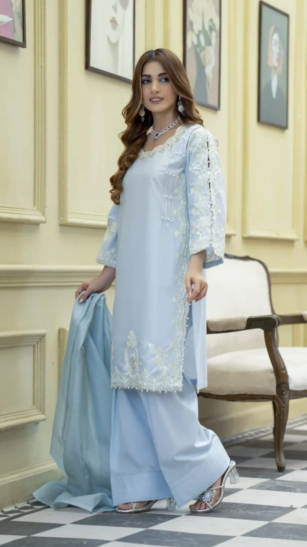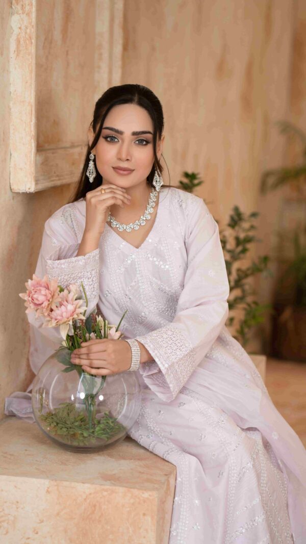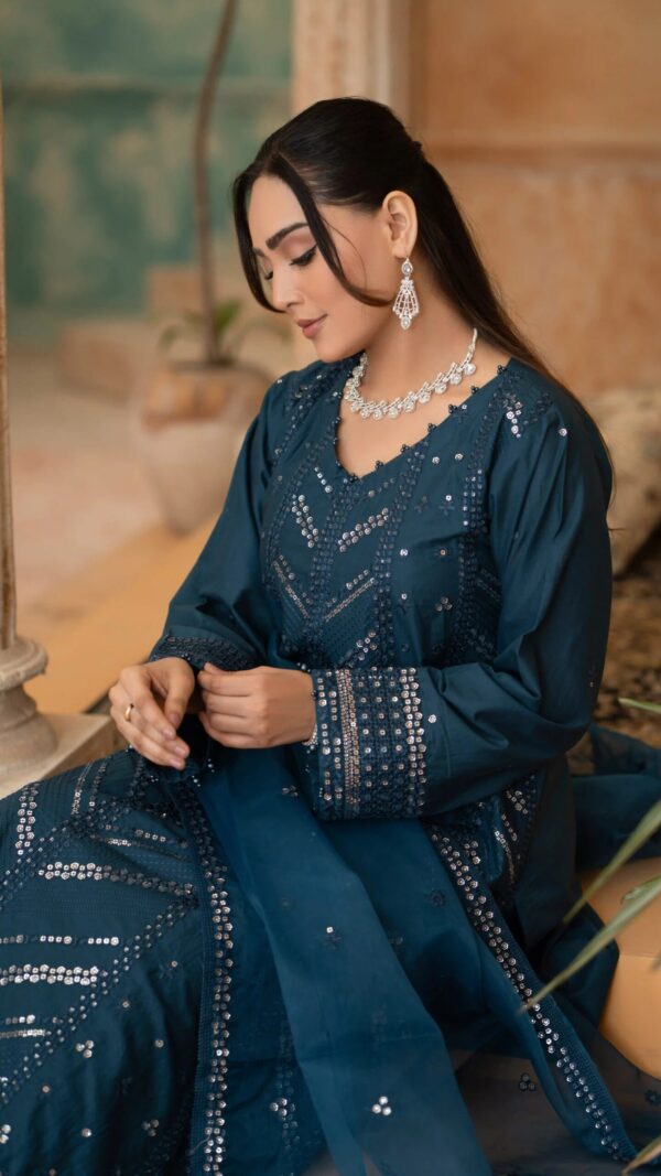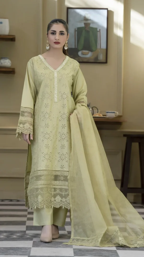 Elegant Black Embroidered Lawn Outfit with Floral Organza Dupatta