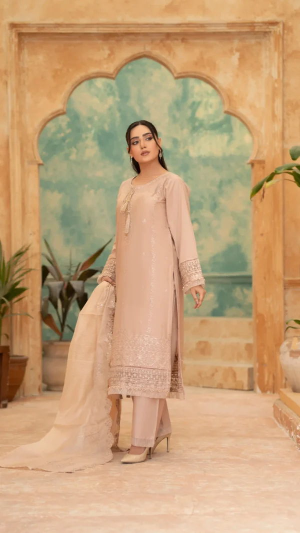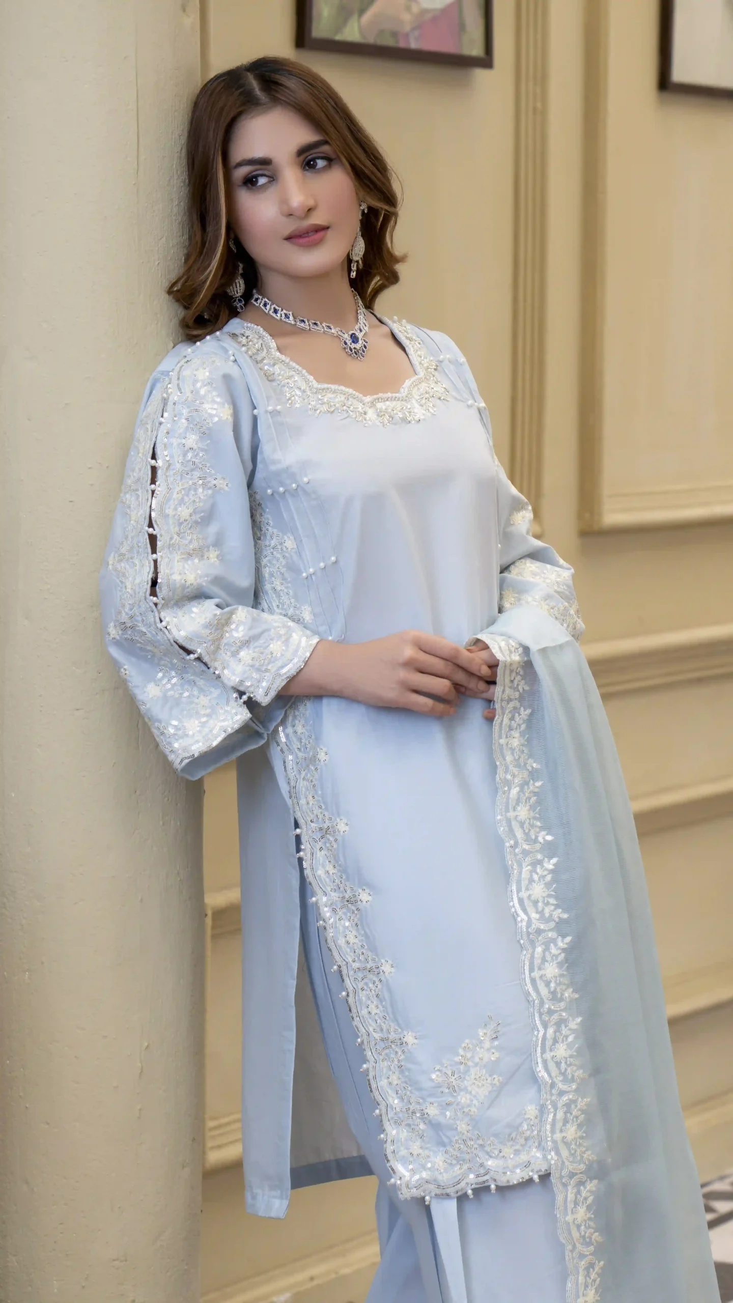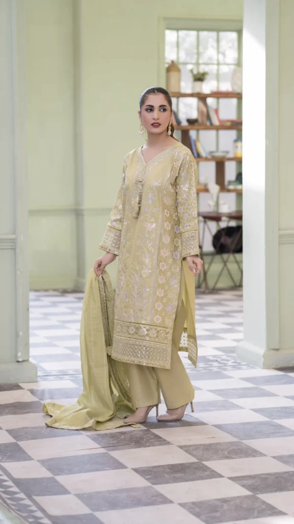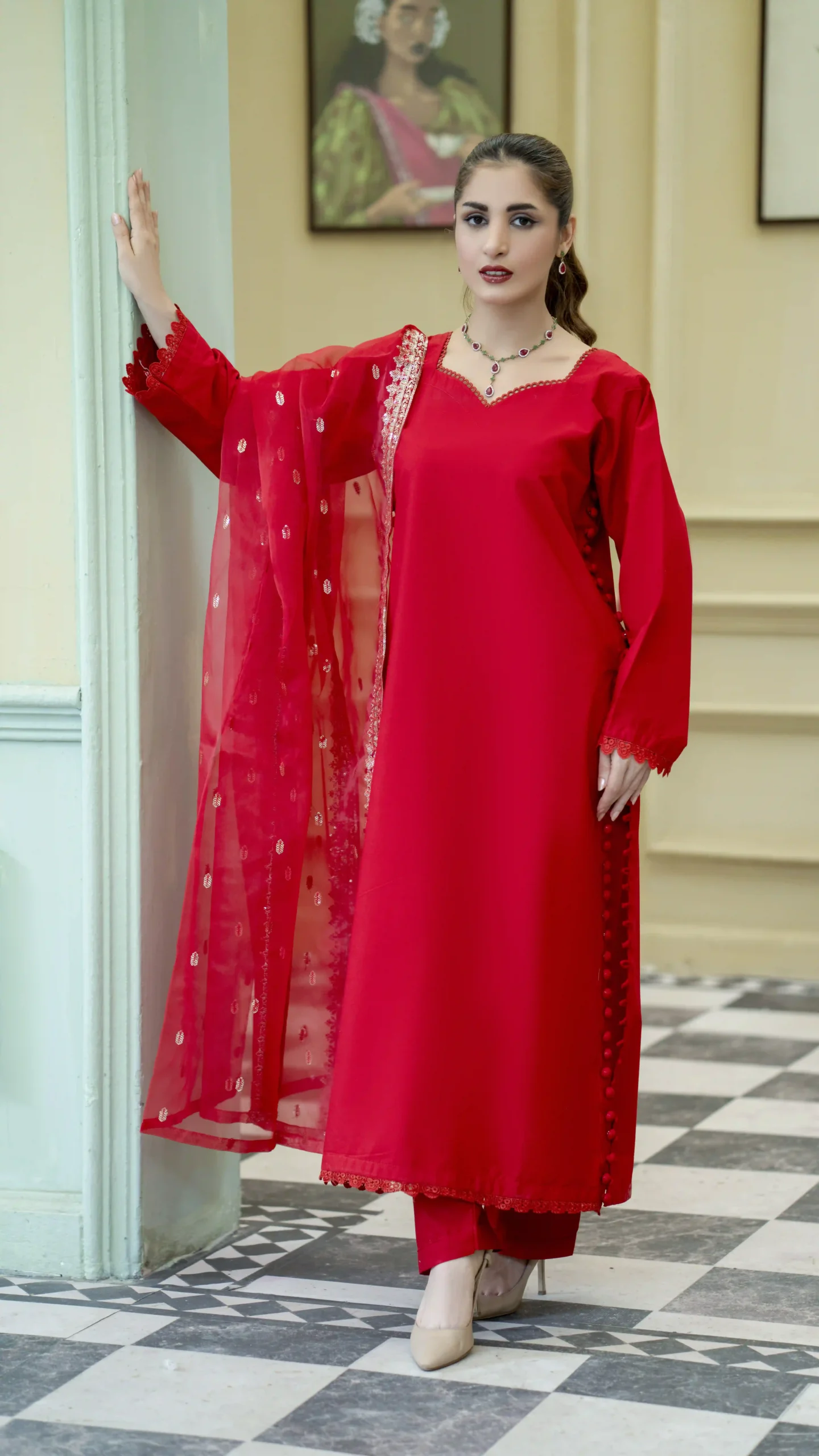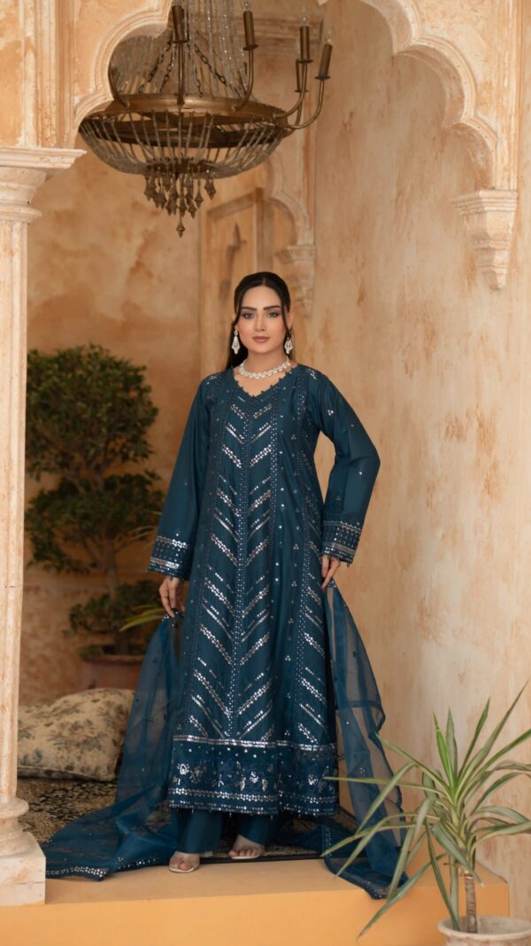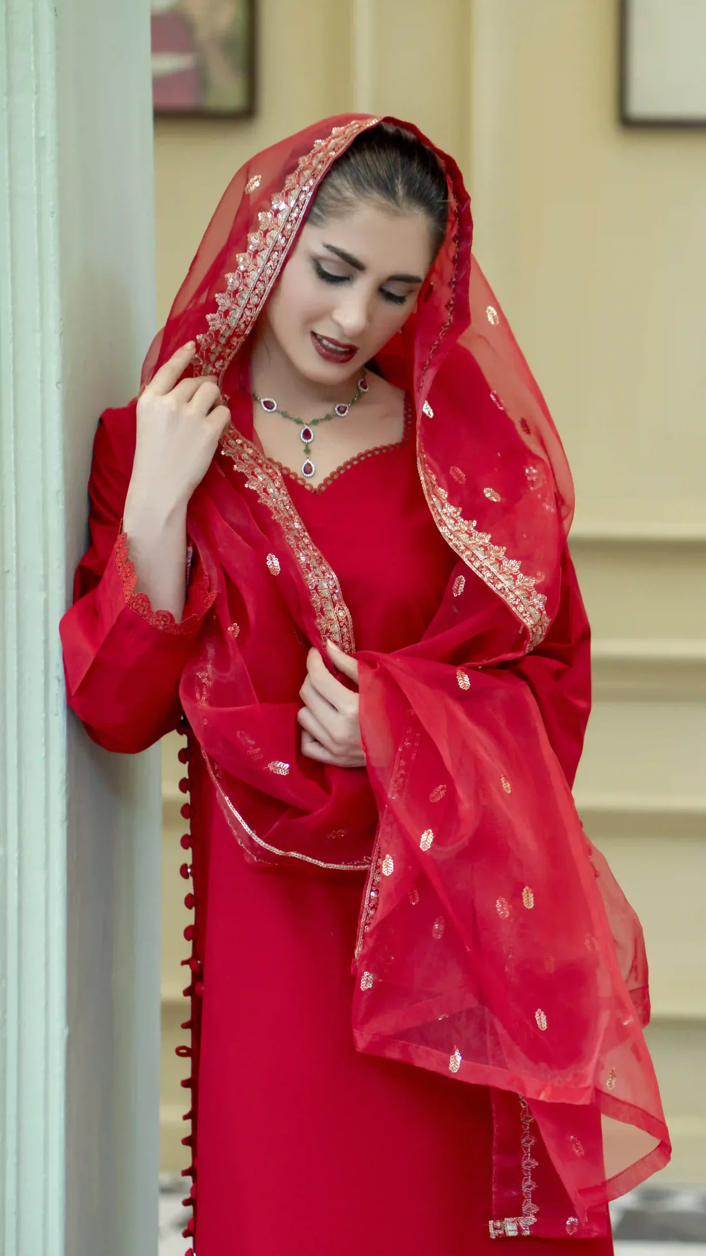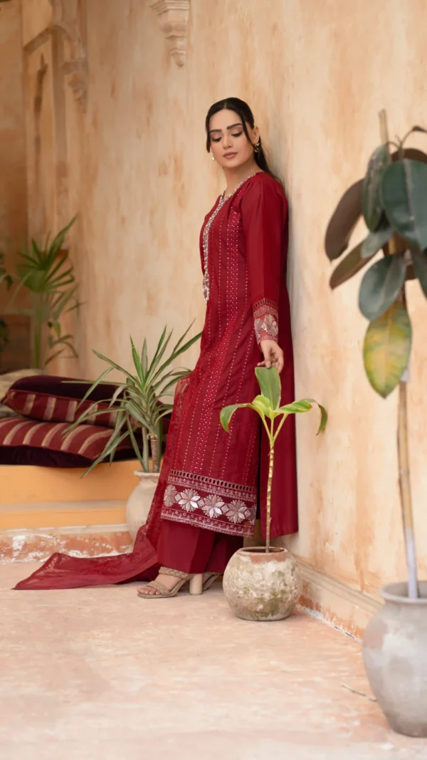 Elegant Black Embroidered Lawn Outfit with Floral Organza Dupatta