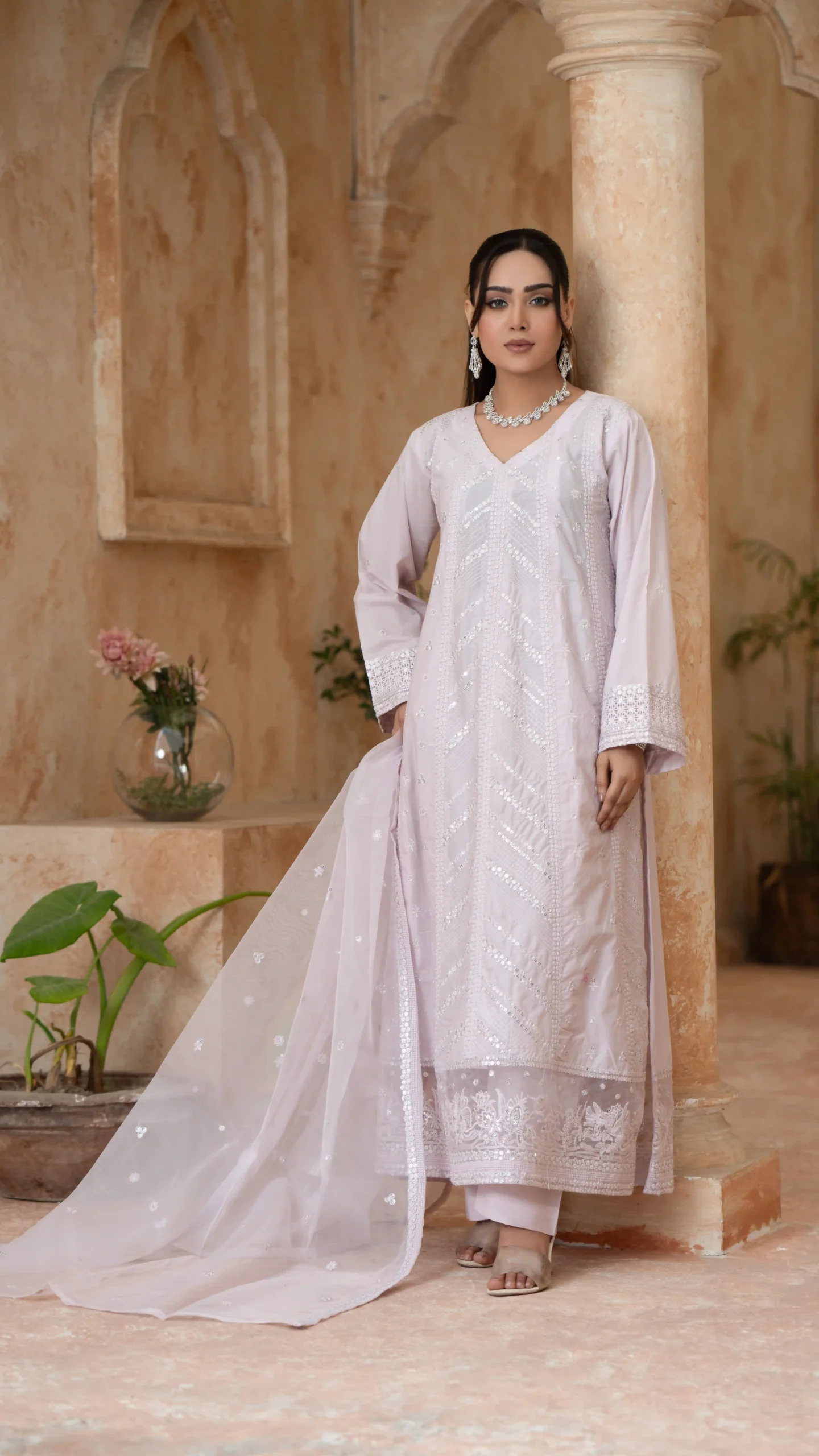 Elegant Embroidered Sequined Details & Organza Dupatta – Premium 3‑Piece Suit