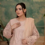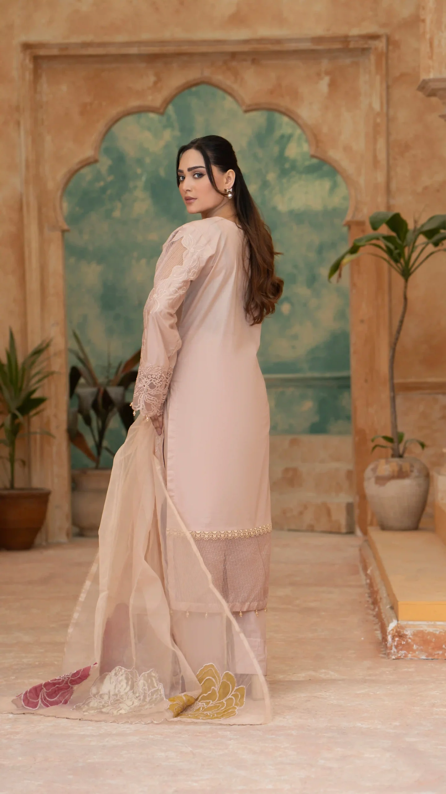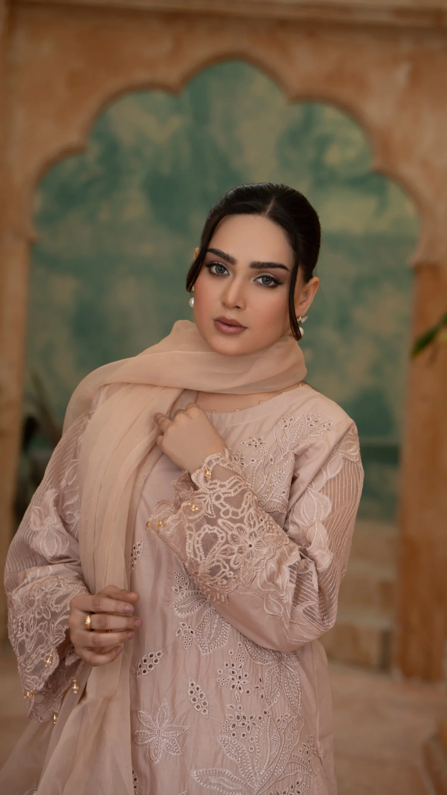 Elegant Embroidered Lawn Outfit with Floral Organza Dupatta