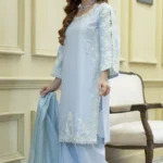 Premium quality soft Lawn fabric in a soothing powder blue shade, offering a breathable and graceful wearing experience.