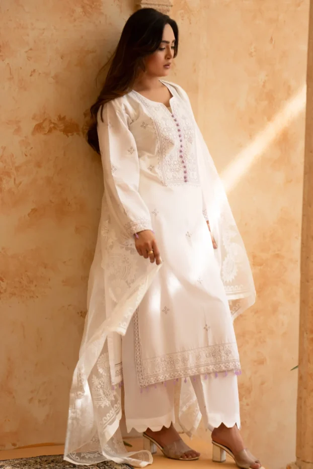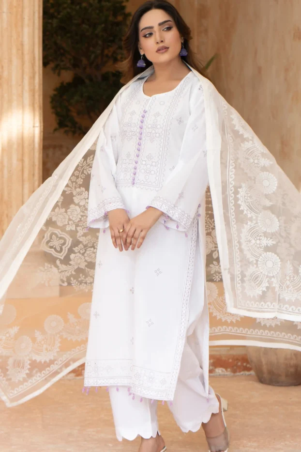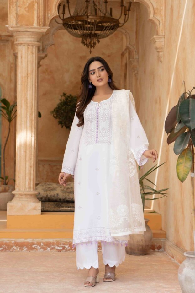 Embroidery Classic White Article with Premium Lawn