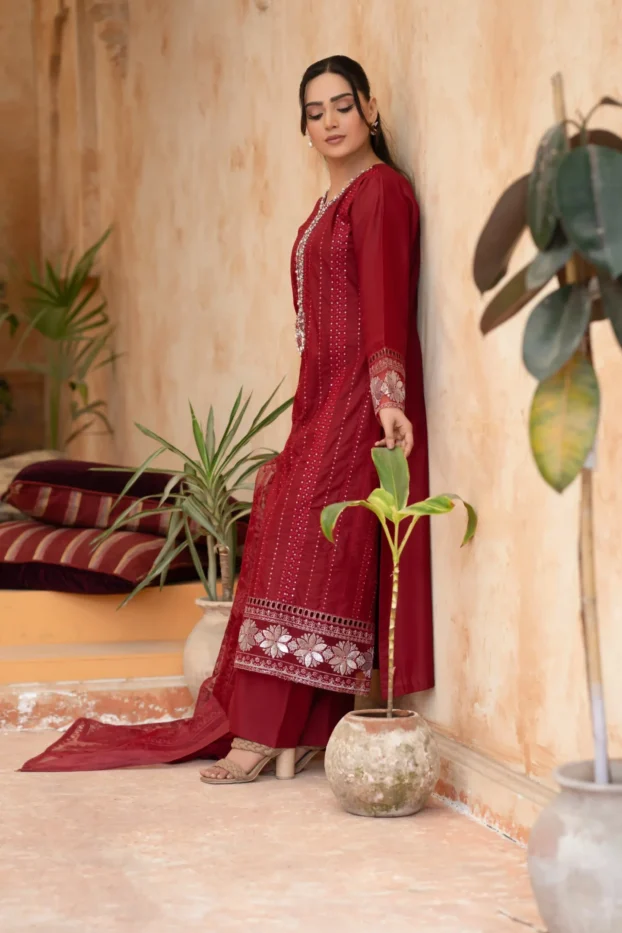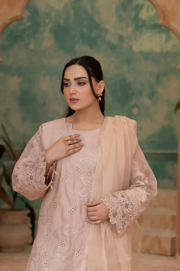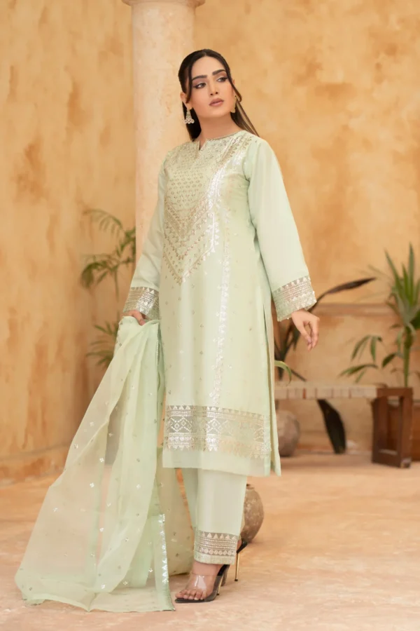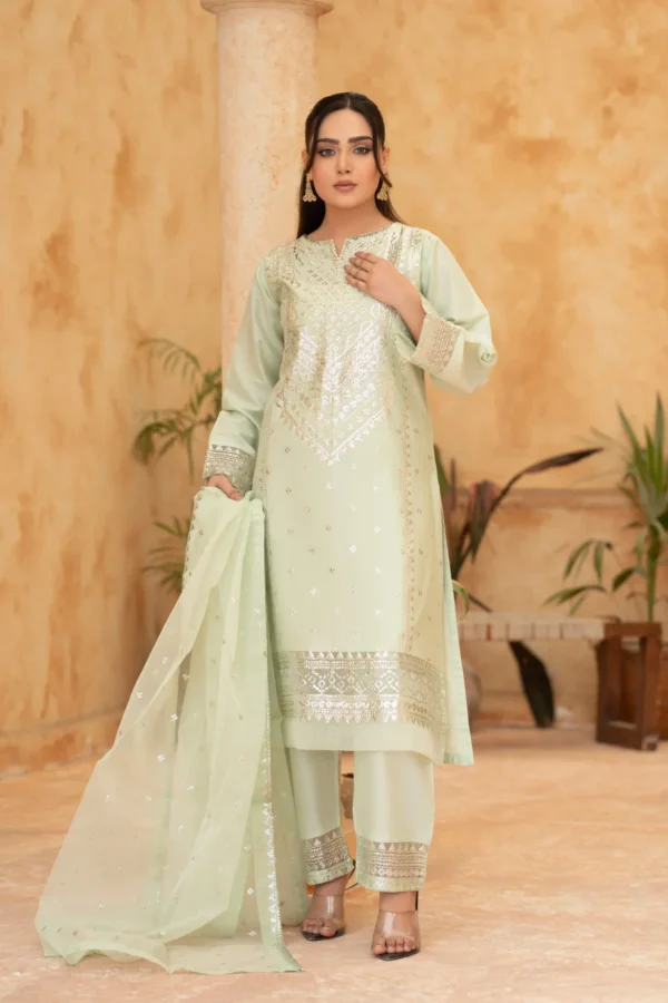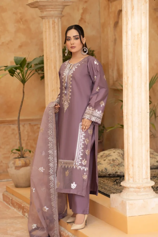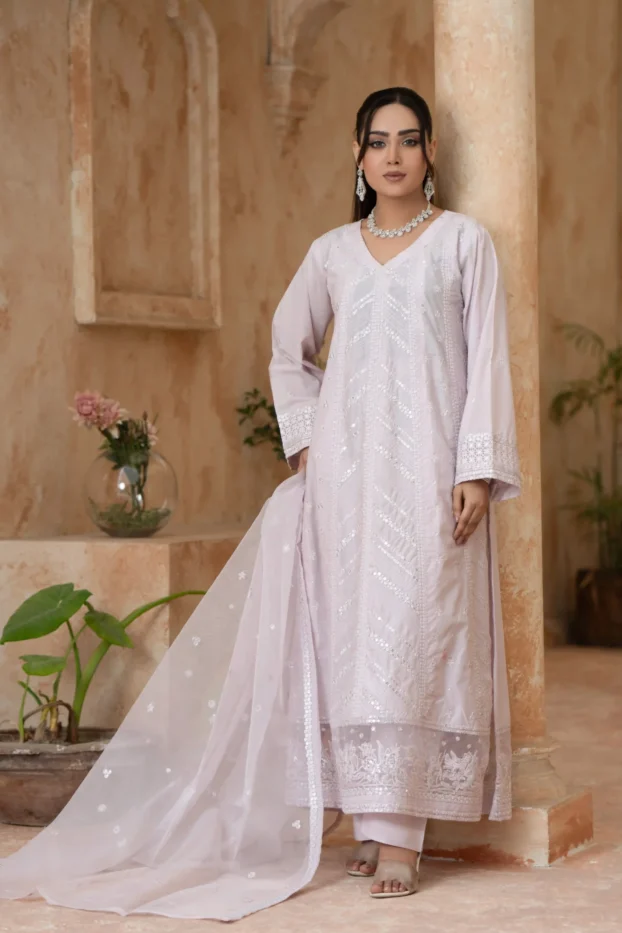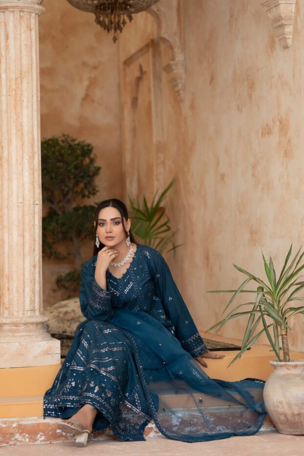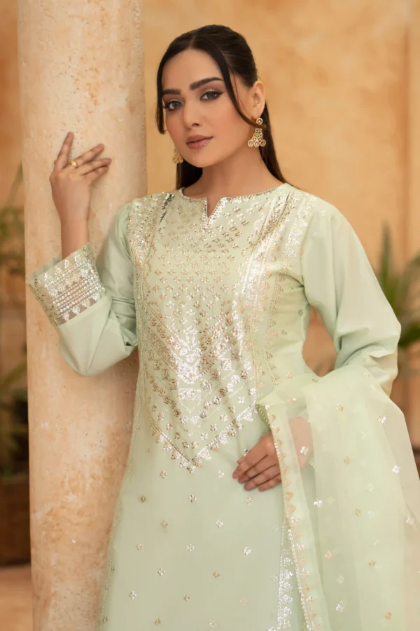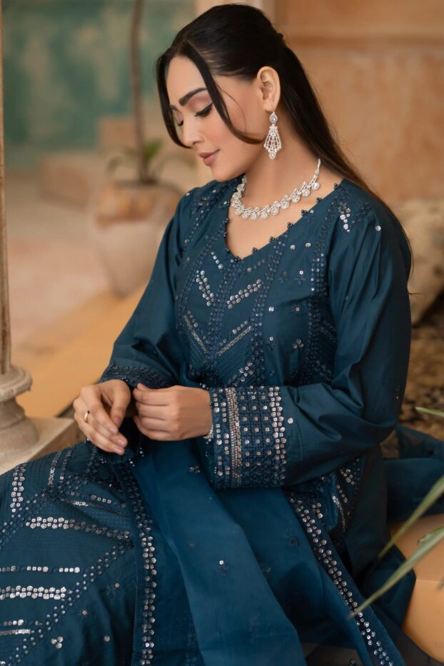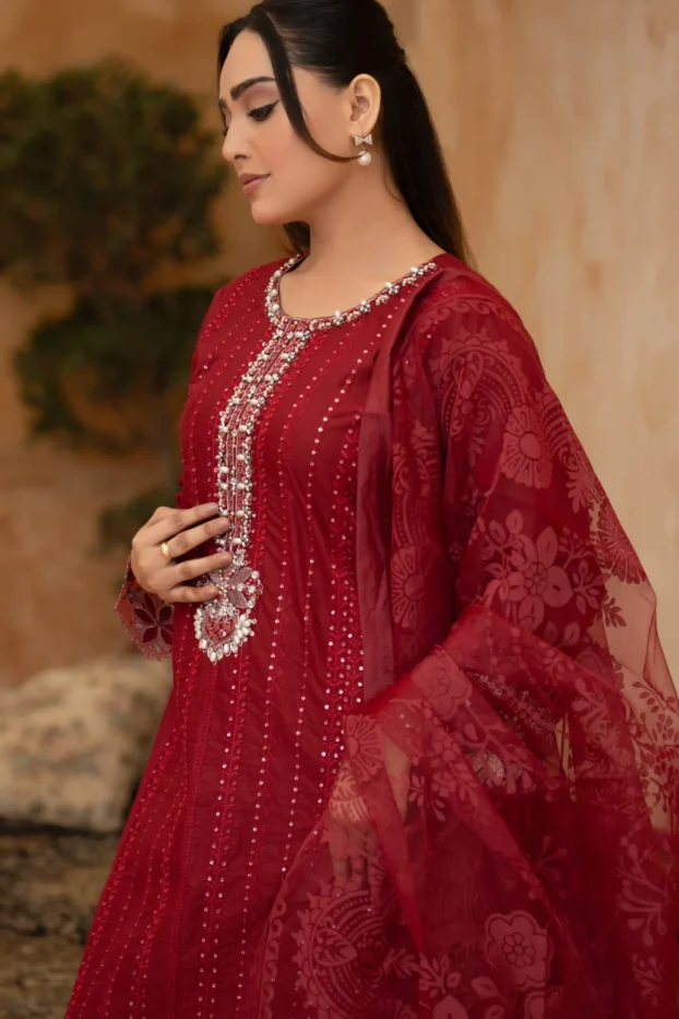 Elegant Embroidered Sequined Details & Organza Dupatta – Premium 3‑Piece Suit