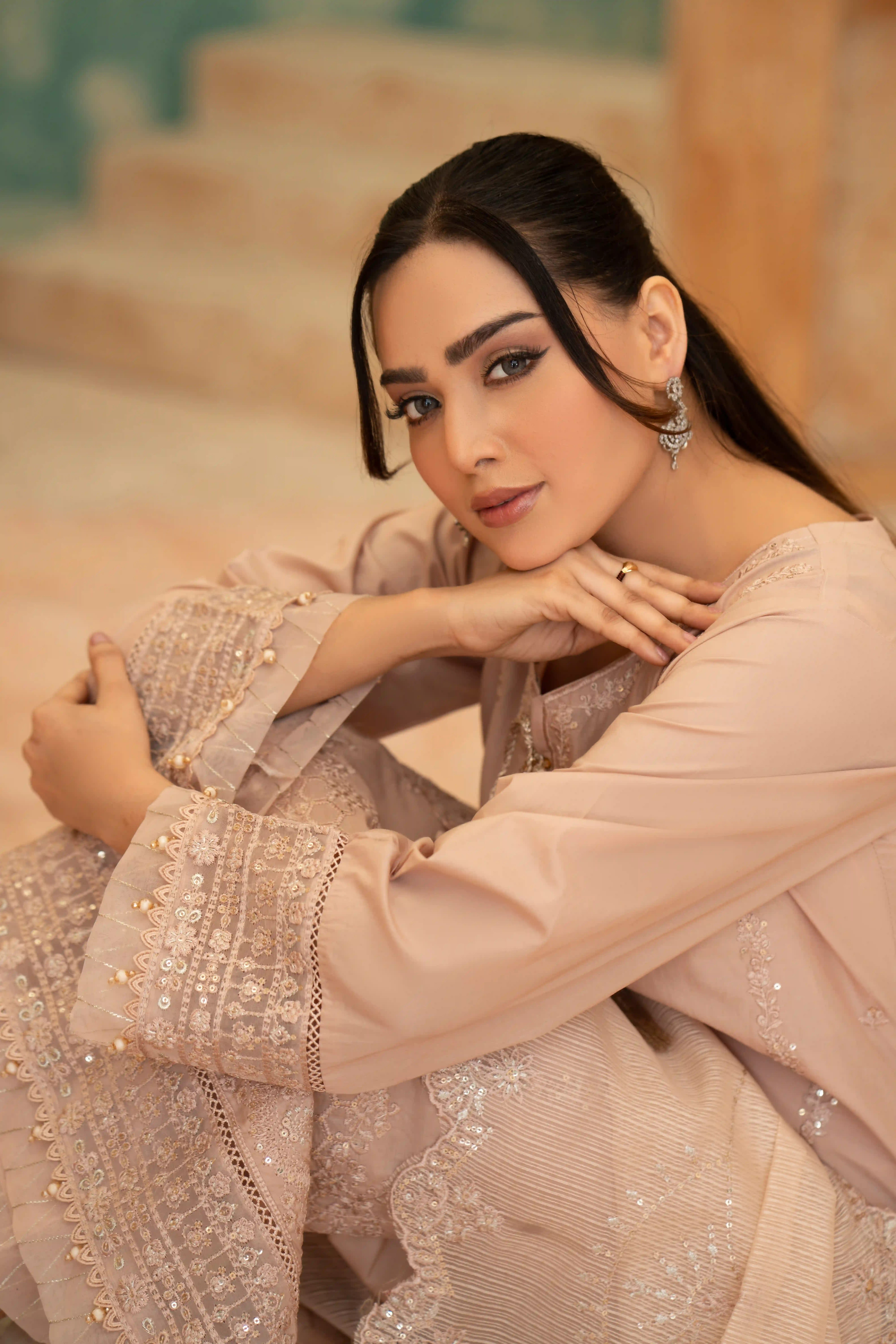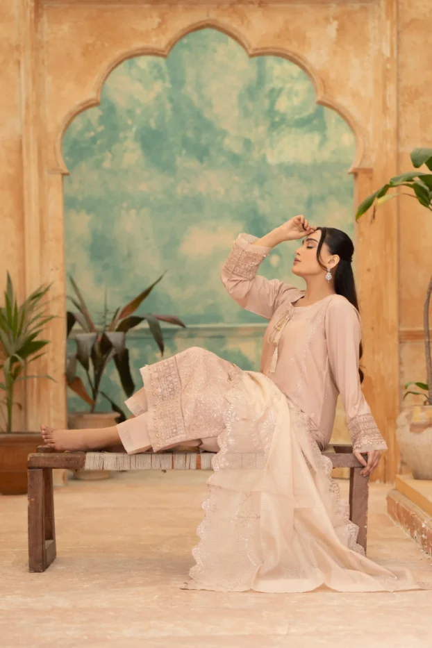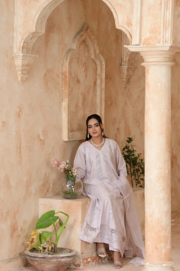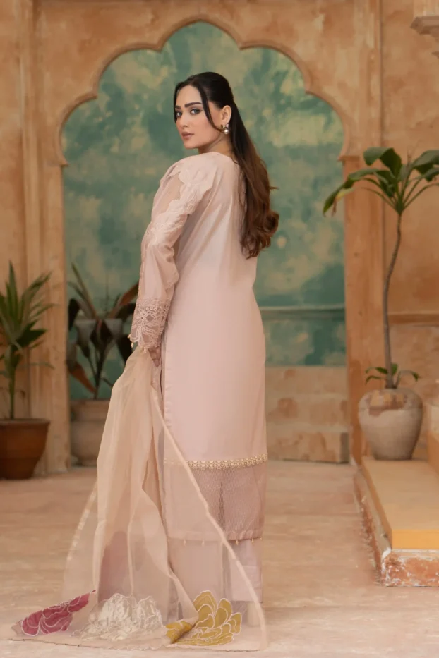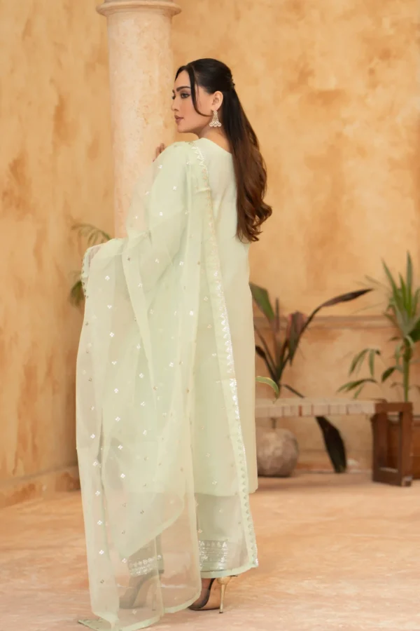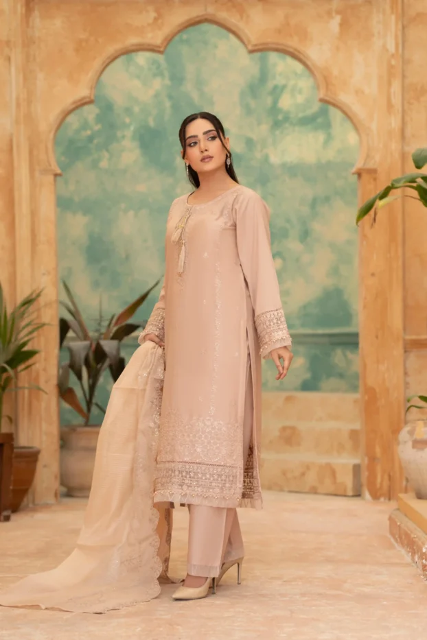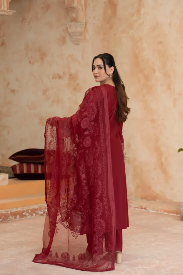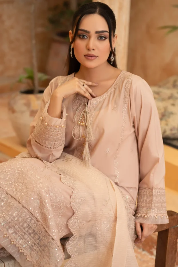 Elegant Embroidered Sequined Details & Organza Dupatta – Premium 3‑Piece Suit