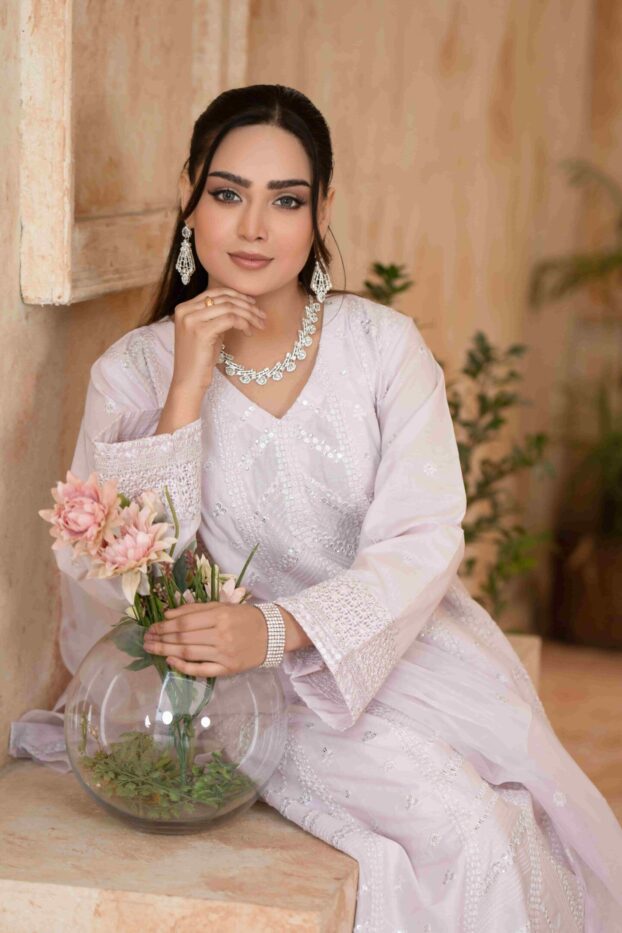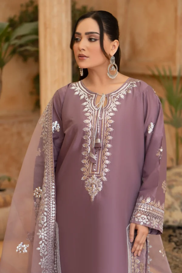 Lavender Crystal‑Embroidered Premium Lawn Ensemble